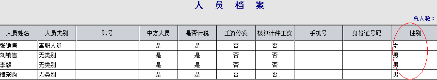 再錄入人員檔案中維護(hù)好每個員工的性別