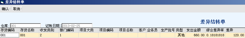 出庫后無結(jié)存,生成的差異結(jié)轉(zhuǎn)單為期初差異加上本期入庫差異。