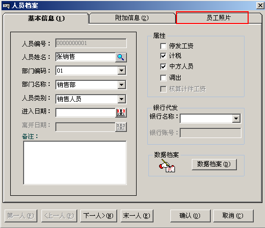 T6 3.3及其以上版本在工資的人員檔案中可以上傳員工照片。
