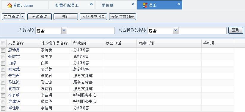 選擇要分配(回收)的員工,點擊分配選中記錄或分配當前列表即可(回收時點擊收回選中記錄或收回當前列表)。