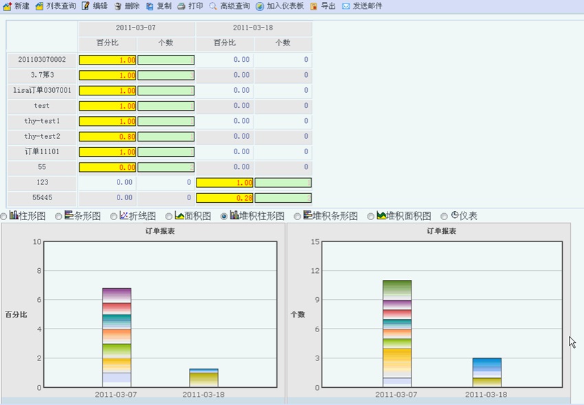 設(shè)定完成點(diǎn)擊保存按鈕后直接進(jìn)入到報(bào)表分析頁(yè)面,根據(jù)設(shè)定的條件進(jìn)行分析,生成報(bào)表。并且可切換圖形顯示方式。