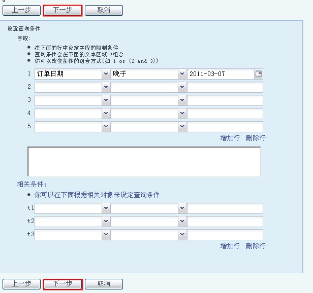 用戶可以根據(jù)企業(yè)需求,設(shè)定報(bào)表的條件,設(shè)置完成后繼續(xù)點(diǎn)擊[下一步]。