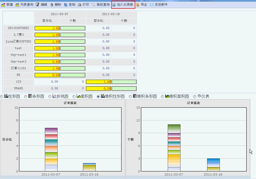 在彈出的“加入儀表板”窗口選擇填入名稱,點(diǎn)擊[提交]按鈕,即可將報(bào)表加入到儀表板。
