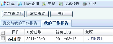 在工作報(bào)告頁(yè)面點(diǎn)擊[我的工作報(bào)告]進(jìn)入我的工作報(bào)告列表頁(yè)面。