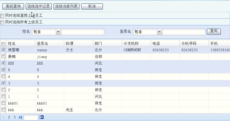 進(jìn)入員工加入工作報(bào)告的選擇窗口,選擇員工后點(diǎn)擊[選擇選中記錄]按鈕。