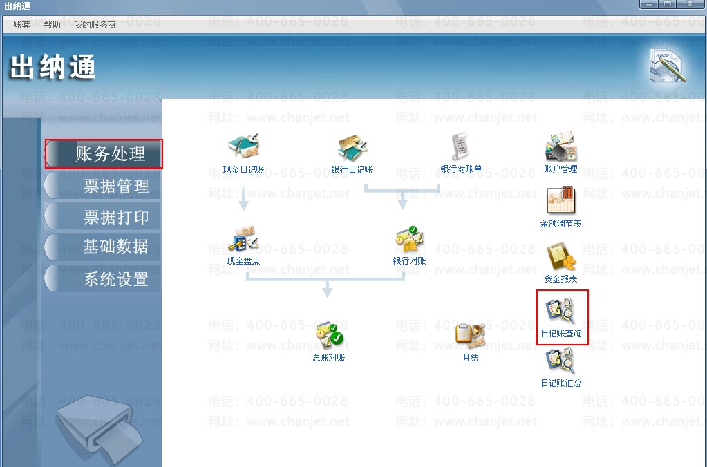 1、“賬務(wù)處理”-“日記賬查詢”