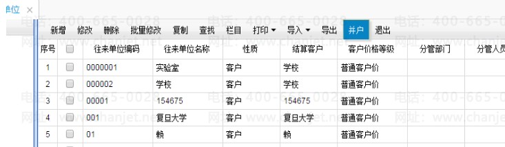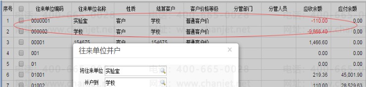 點(diǎn)擊【往來單位】——點(diǎn)擊表頭工具欄【并戶】——選中您所需要合并的單位確定后,如下圖,此往來款等,會(huì)直接合并相加取總數(shù)。