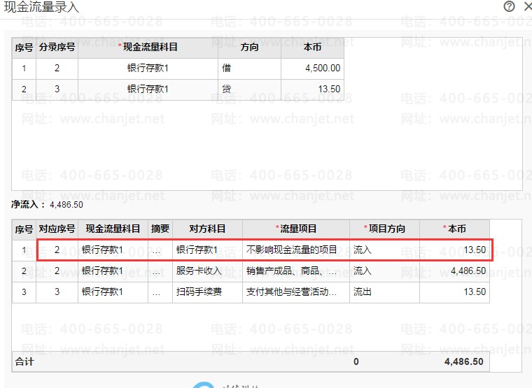 點開明細(xì),查看一張憑證可以發(fā)現(xiàn),憑證流量分配有問題,不影響現(xiàn)金流量的項目流入13.5,還是有一條應(yīng)該是不影響現(xiàn)金流量的項目流出13.5;