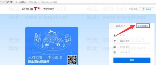 1、打開(kāi) T+登陸界面使用 admin 登陸系統(tǒng)管理;