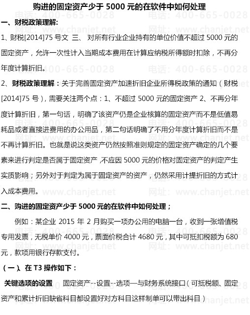 購進(jìn)的固定資產(chǎn)少于5000元的在軟件中如何處理