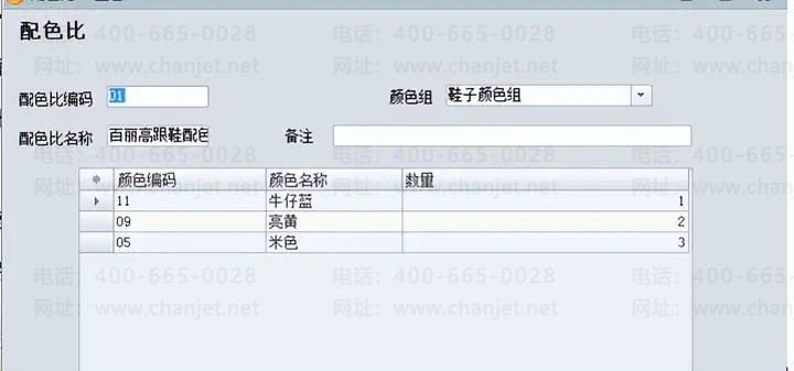 配色比:指的是一批貨中各顏色的標(biāo)配是固定的,如一包均碼的鞋子中固定牛仔藍(lán)有1雙,亮黃有2雙,米色3雙,那么可以添加一個(gè)配色比。