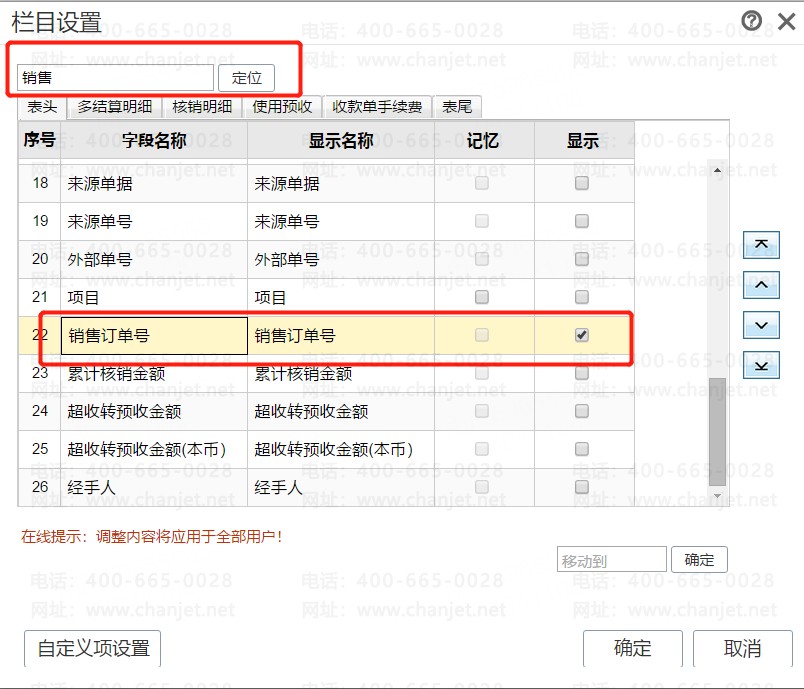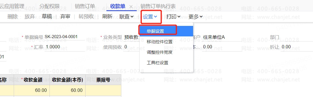 2.收款單單據(jù)設(shè)置將銷售訂單號勾選顯示