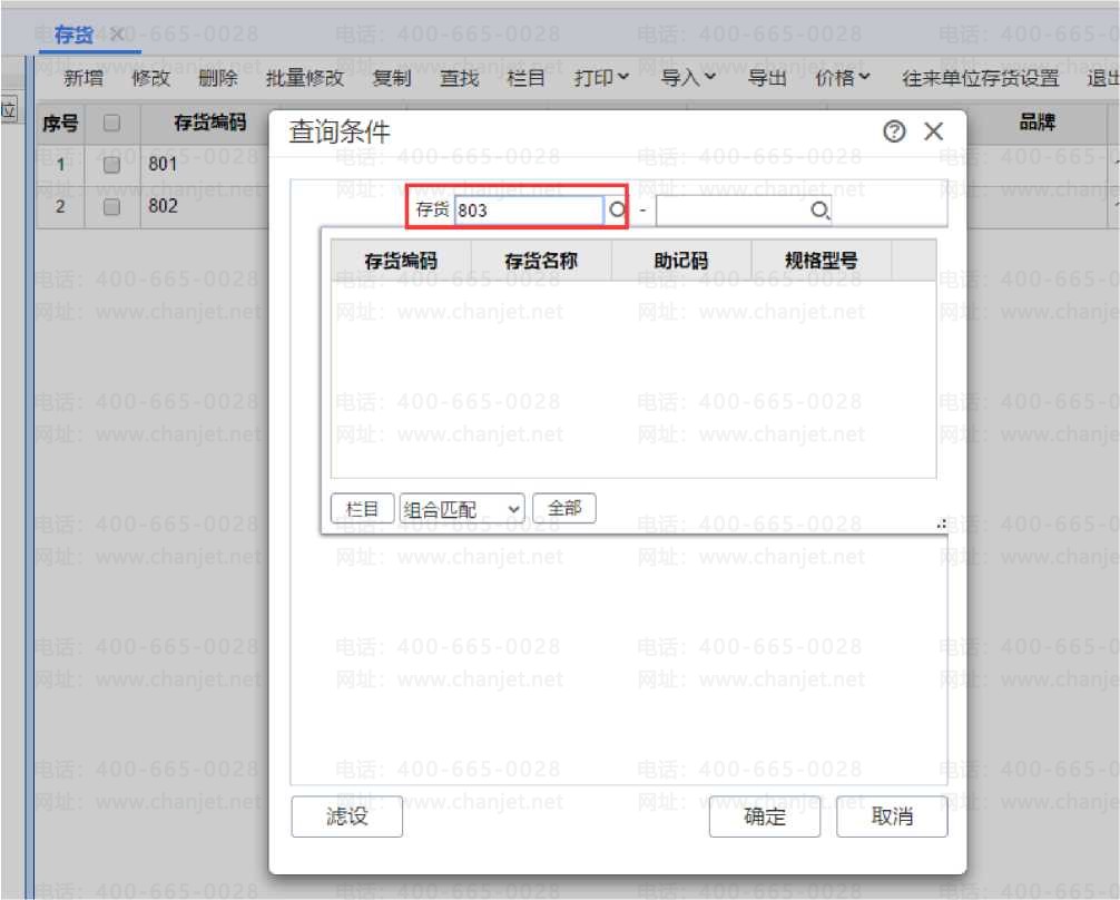 3、點擊確定,就可以過濾到803這個存貨