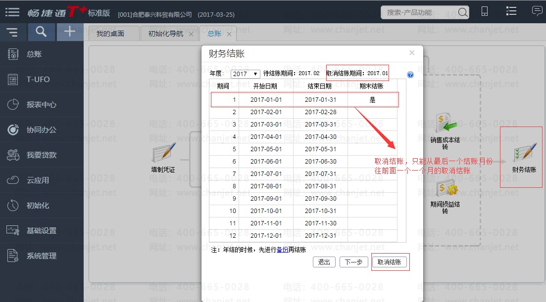 當(dāng)T+總賬系統(tǒng)結(jié)賬之后,若發(fā)現(xiàn)已結(jié)賬的月份中存在錯誤,需要修改的,需點擊【取消結(jié)賬】即可。