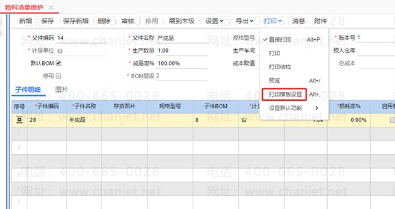 4、退出打印模板設(shè)置界面在物料清單維護(hù)界面,重新選擇【打印】-【打印結(jié)構(gòu)】選擇剛設(shè)計(jì)的打印模板打印即可。