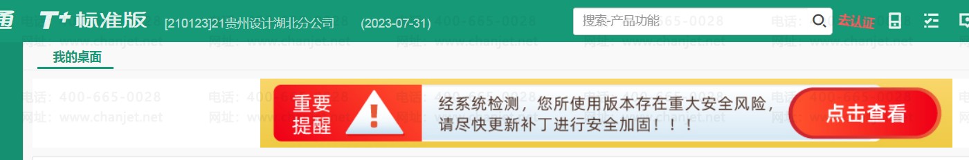 T+13.0提示您所使用版本存在重大安全風(fēng)險