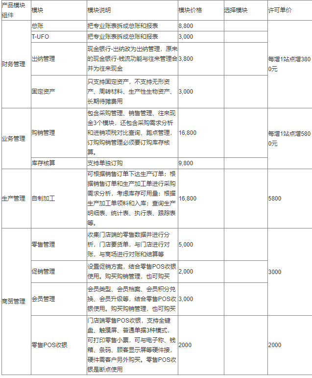 暢捷通T+是款適合小微企業(yè)使用的人財(cái)貨客一體化ERP管理系統(tǒng),很多小型的商貿(mào)型企業(yè),小型生產(chǎn)企業(yè)等都會(huì)來咨詢暢捷通T+這款軟件的價(jià)格,今天用友小編就把暢捷通T+軟件功能模塊的官方報(bào)價(jià)放在下面供大家參考: