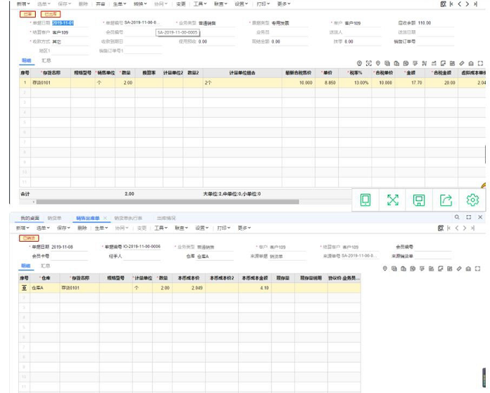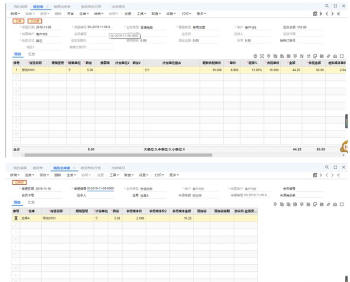 銷貨單單據(jù)日期2019-11-01