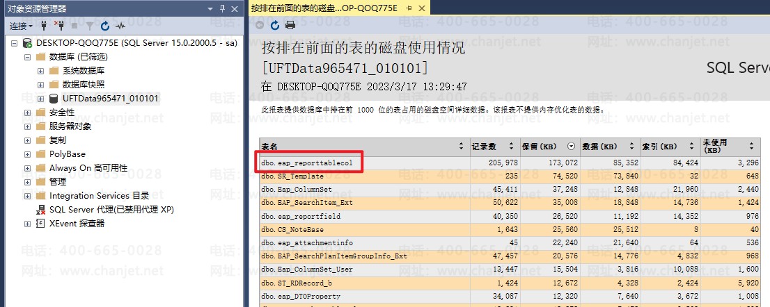 通過數(shù)據(jù)庫報表按排在前面的表的磁盤使用情況功能,對數(shù)據(jù)庫表進行分析磁盤占用情況,進而判斷是具體占用