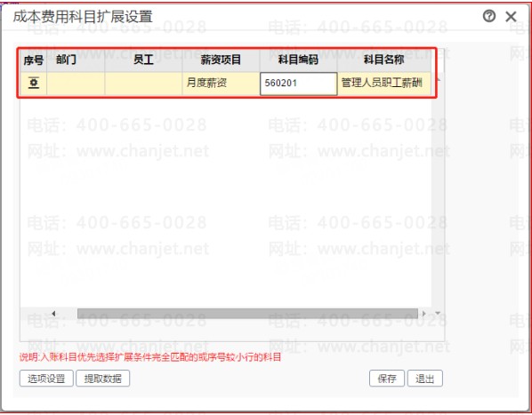 1、在總賬——科目設(shè)置——成本費(fèi)用科目擴(kuò)展設(shè)置中設(shè)置科目