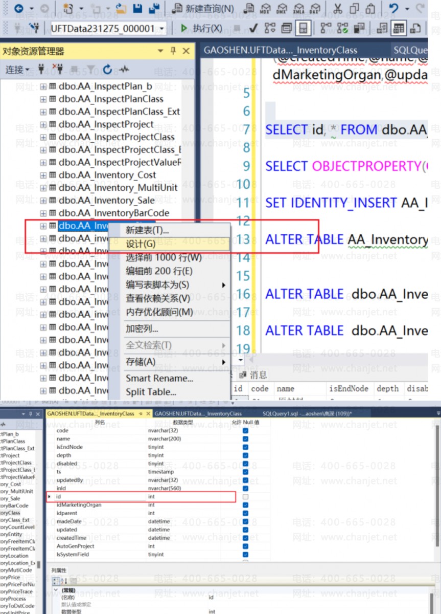 第二步:然后打開賬套數(shù)據庫,找到表--》AA_InventoryClass,鼠標右鍵,選擇設計,在打開的頁面中,選擇id那一行,在下面的窗口中,點開標識規(guī)范,把(是標識)改成是,然后ctrl+s保存即可。再新增分類即可正常。
