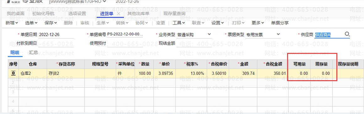 3、現(xiàn)存量查詢現(xiàn)存量為0,可用量100