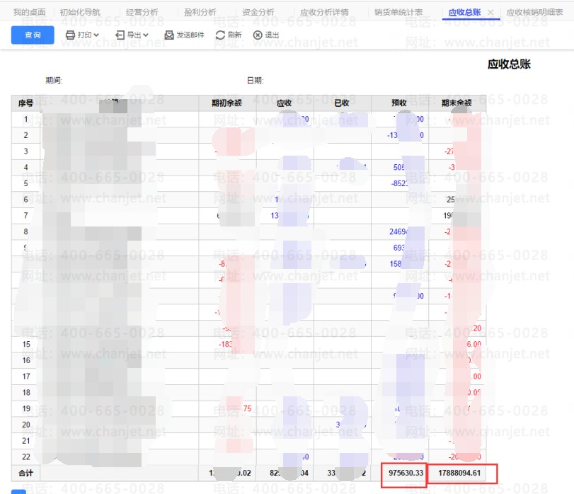 可以通過(guò)應(yīng)收總賬查詢(xún)出來(lái)應(yīng)收余額17888094.61和預(yù)收975630.33