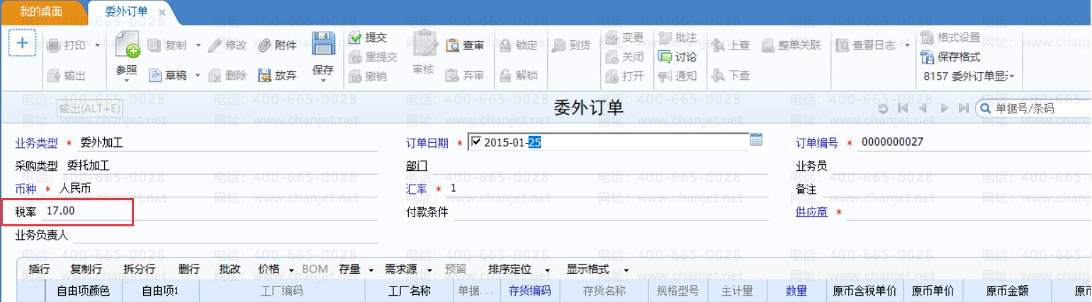 增加空白委外訂單,表頭稅率默認(rèn)帶出為17