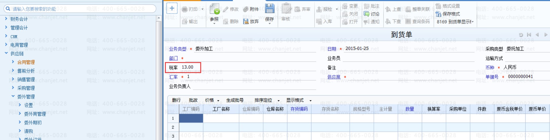 增加空白委外到貨單,表頭稅率默認(rèn)帶出為13