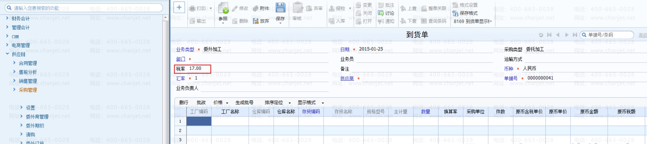增加空白到貨單,表頭稅率默認(rèn)帶出為17
