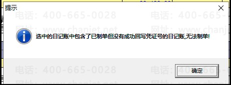 選中的日記賬中包含了已制單但沒有成功回寫憑證號的日記賬 無法制單!
