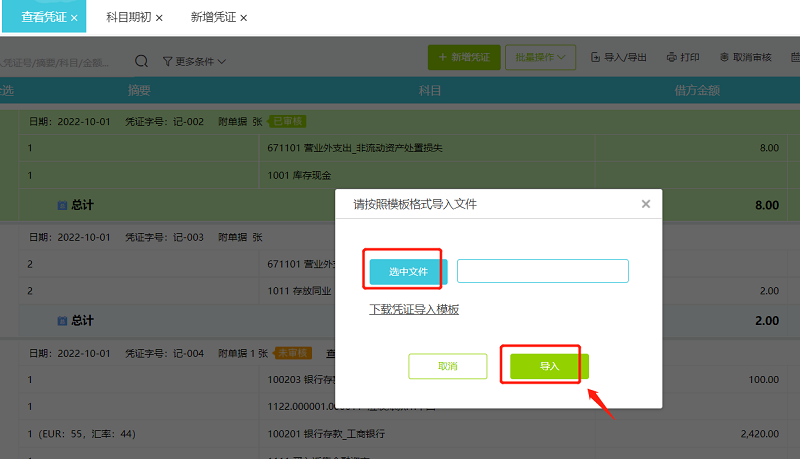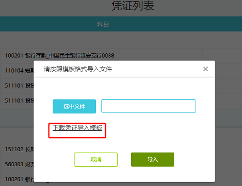 2.點(diǎn)擊【下載憑證導(dǎo)入模板】,參照軟件里面的導(dǎo)入模板把需要導(dǎo)入的憑證信息按照模板填制好,注意不要修改模板里面的格式,需要保留原格式,注:憑證類型一般是記;