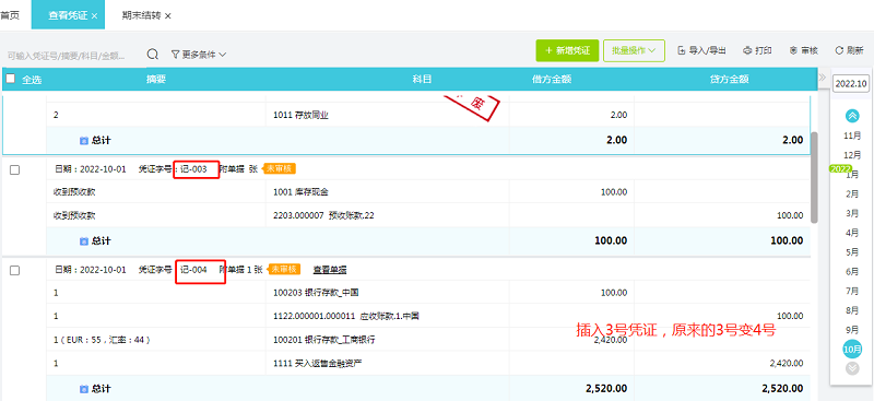 點擊新增憑證,修改憑證號,可直接將憑證往前插入