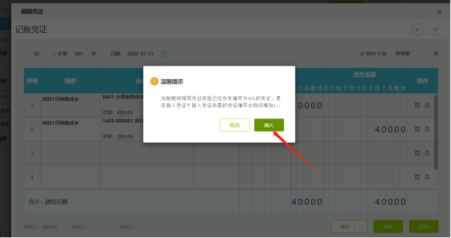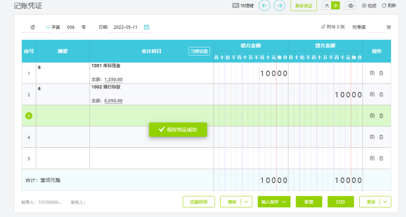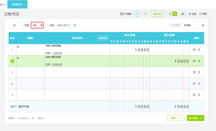 修改憑證號,點擊插入保存,直接保存為對應(yīng)憑證號