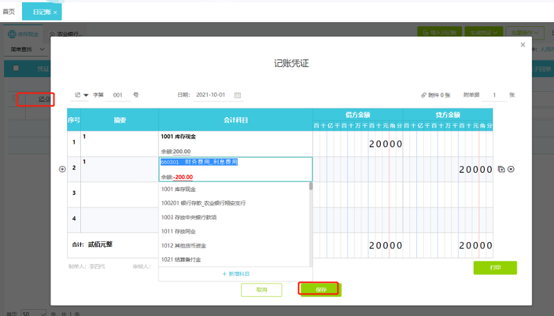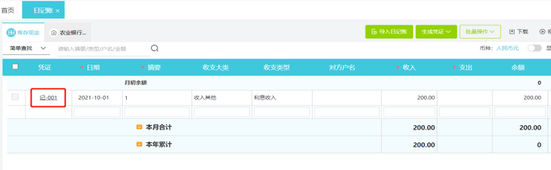 1、點(diǎn)擊日記賬已生成憑證的憑證號(hào),即可打開(kāi)對(duì)應(yīng)的憑證修改。