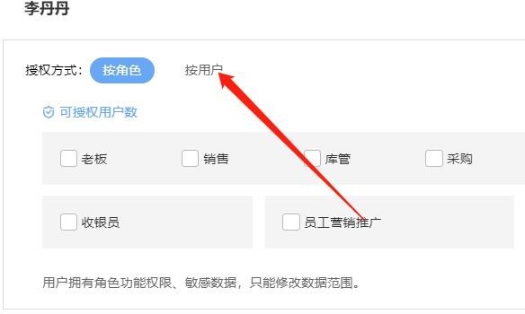 3、把之前授權(quán)的角色信息清除,之后按用戶授權(quán),授權(quán)該用戶某些權(quán)限,之后在該員工后面就能看到【按用戶授權(quán)】字樣。