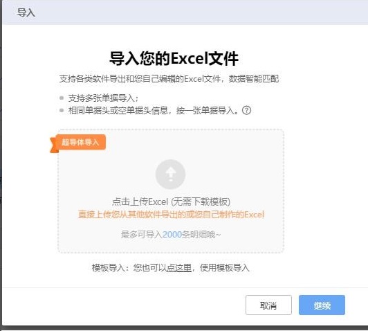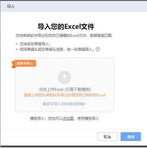 二、進(jìn)入歷史界面后點(diǎn)擊右上角的【導(dǎo)入】按鈕,下載導(dǎo)入模板。