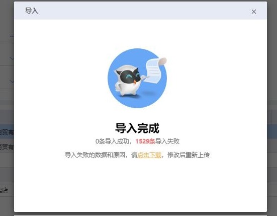 七、若導(dǎo)入不成功,系統(tǒng)會(huì)將錯(cuò)誤原因整理為一個(gè) excel,可下載該文檔,根據(jù)錯(cuò)誤提示修改 excel 文件后再次導(dǎo)入。