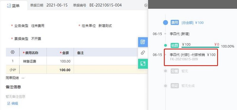 找到對應(yīng)的付款單取消核銷之后,費用支出單才可以刪除