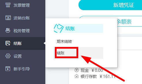 2. 若發(fā)現(xiàn)已經(jīng)結(jié)賬的月份錄入的憑證有錯(cuò)誤時(shí),點(diǎn)擊【結(jié)賬】-【反結(jié)賬】即可取消結(jié)賬,修改錯(cuò)誤憑證。